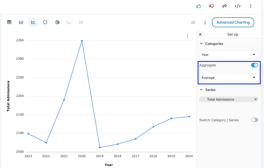 Any column selections will now updated in the Advanced Charting tool, so you can easily jump in for deeper customizations such as color, labels, etc. The advanced chart will then be viewable in the advanced chart icon.